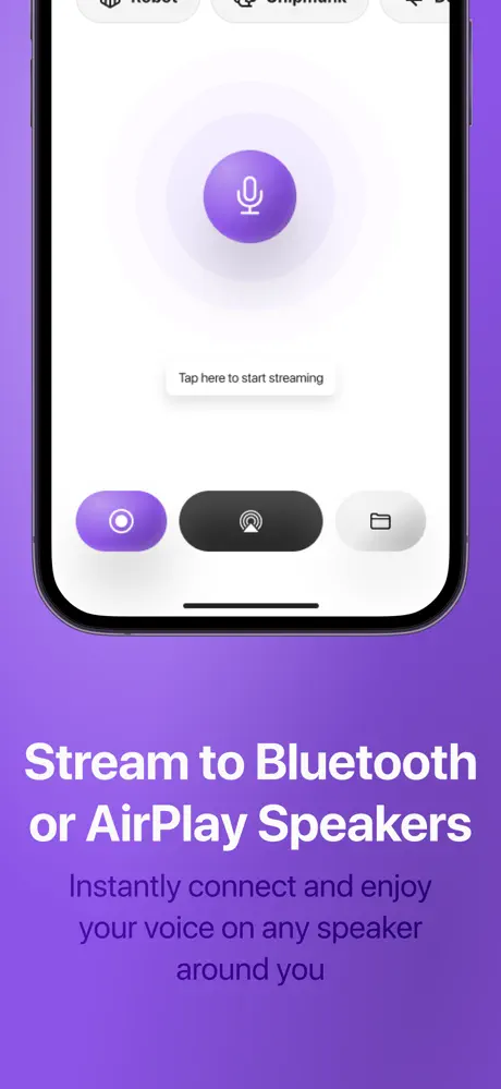 Instantly stream your voice to any Bluetooth or AirPlay speaker, applying fun, live effects like Robot or Echo with one tap.