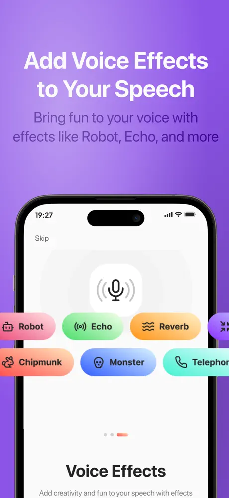 Change your voice live with one-tap effects like Robot, Chipmunk, Echo, and Reverb for any occasion.