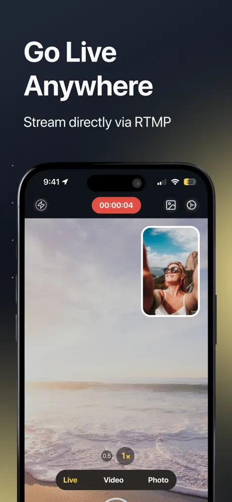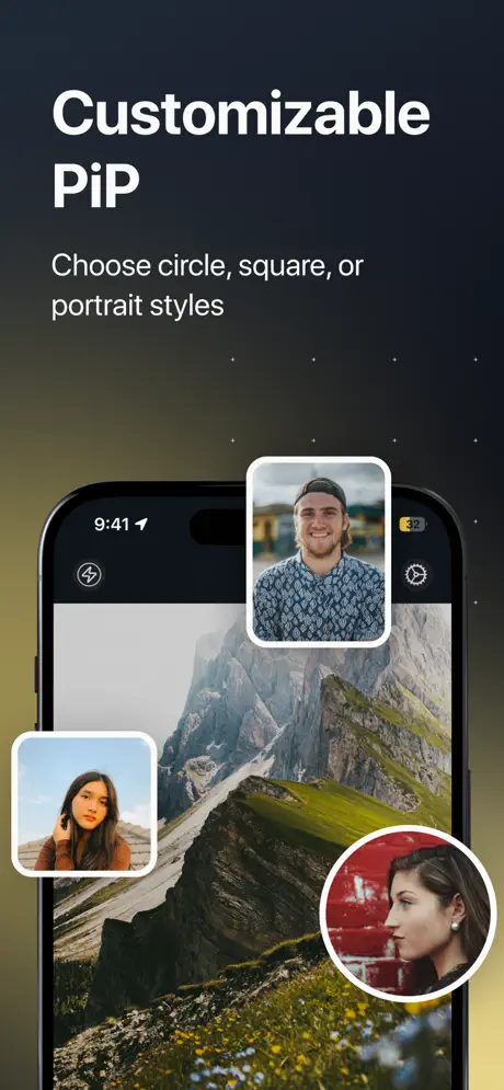 Record or live stream with both front and back cameras simultaneously, using a fully customizable Picture-in-Picture layout.